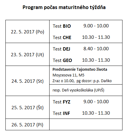 Program počas maturitného týždňa